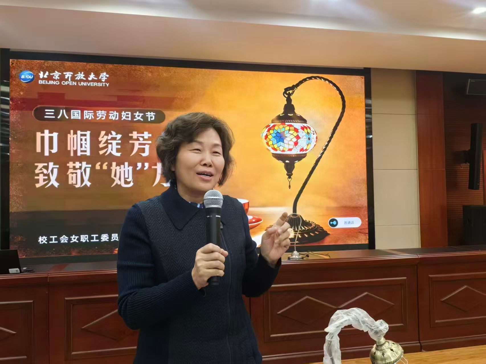 在三八國際勞動婦女節到來之際,北京開放大學工會女職工委員會于學校國際報告廳精心舉辦 “巾幗綻芳華,致敬‘她’力量” 馬賽克燈手工制作主題活動,為全校女職工送上節日的美好祝福與暖心陪伴。