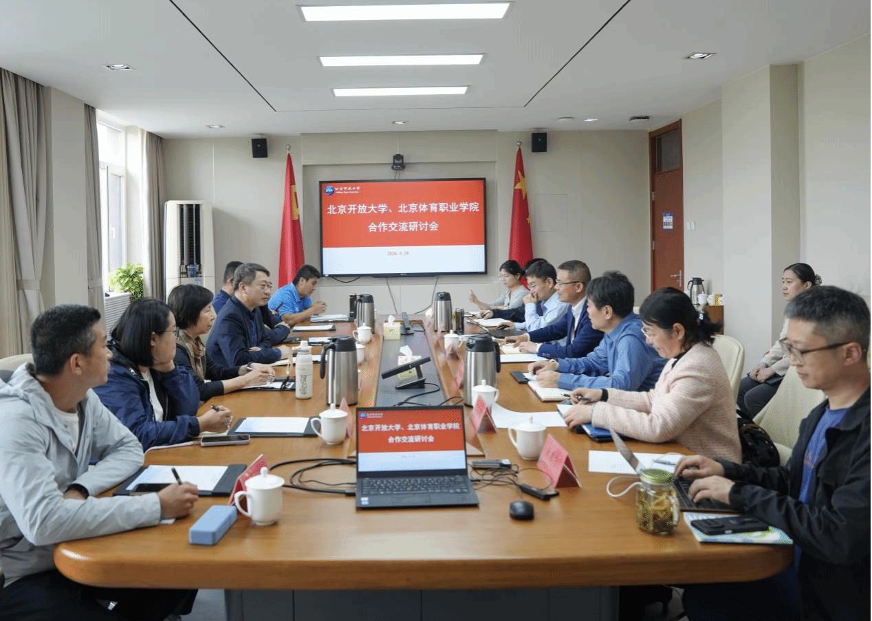 為深入貫徹“十五五”規劃綱要關于加快建設體育強國的要求,為北京全面促進全民健身、體育賽事、體育行業發展提供助力,更好地服務首都發展,4月24日下午,北京開放大學黨委書記胡九龍會見了來訪的北京體育職業學院黨委書記張軍一行,就雙方合作事宜展開洽談。北京開放大學副校長徐志立,北京體育職業學院黨委副書記、院長楊凌,副院長楊陽等參加了會談。