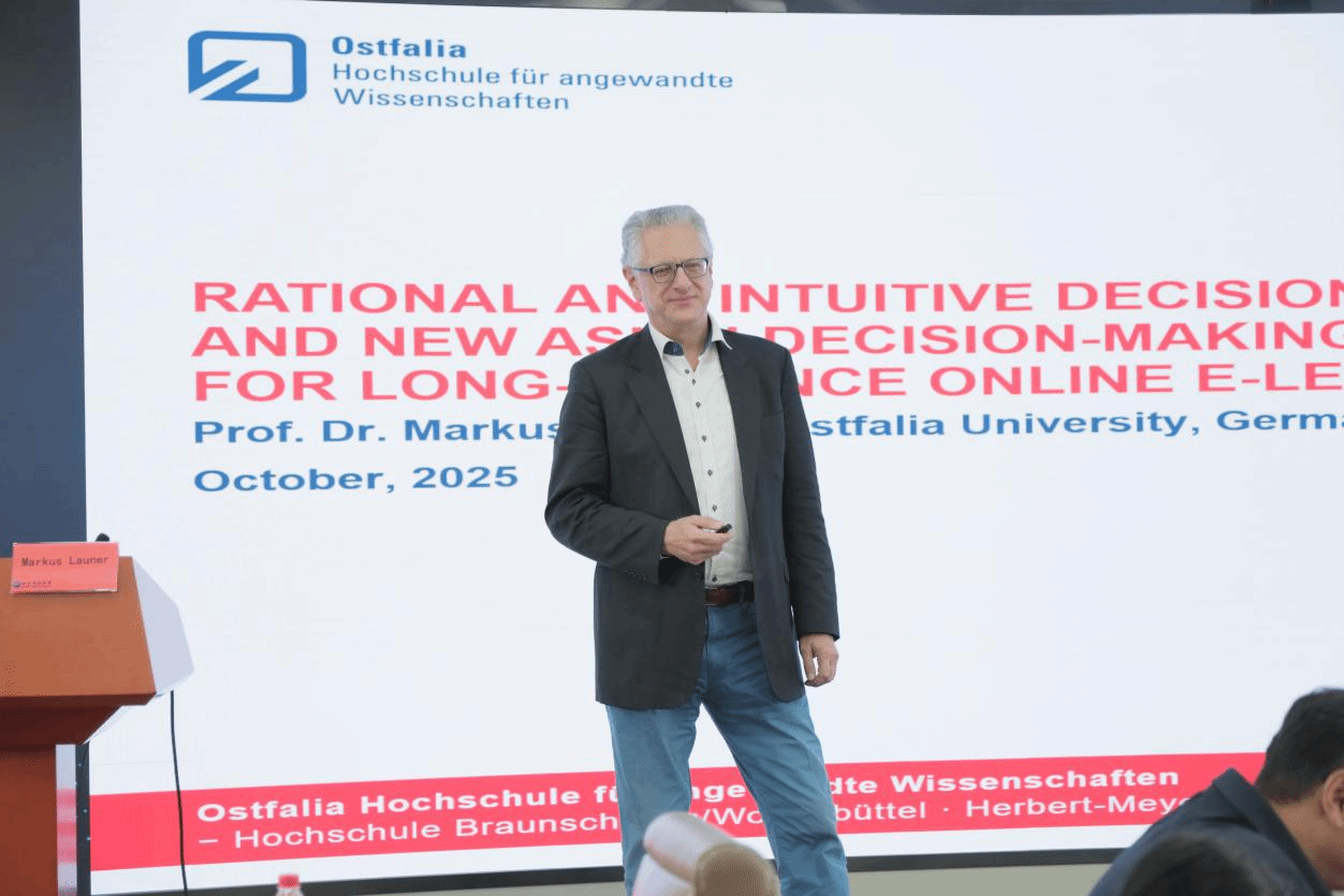 德國奧斯特法利亞大學馬庫斯?A?勞納教授(Markus A. Launer)以《遠程在線學習中的理性與直覺決策機制》為題,提出融合亞洲文化視角的教育決策模型。他系統闡釋了直覺決策的9種亞洲特色風格,開發出12維度決策能力測評工具,并呼吁將東方智慧納入全球教育決策體系。
